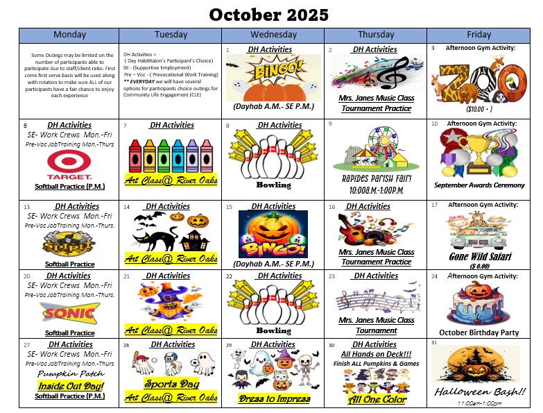 Fall is here, and October is packed with fun, creativity, and celebrations for our participants! Here are some of the exciting activities happening this month: